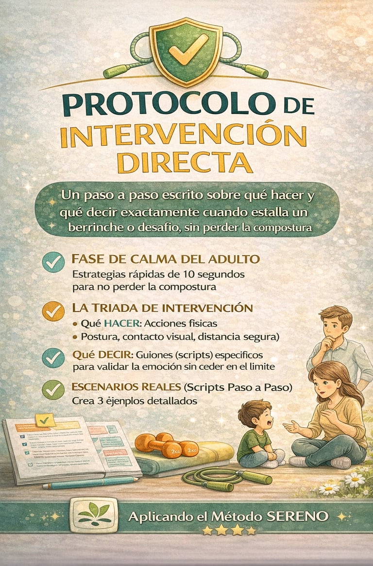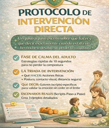 Protocolo de Intervención Directa: Un paso a paso escrito sobre qué hacer y qué decir exactamente cuando estalla un berrinche o desafío, sin perder la compostura.