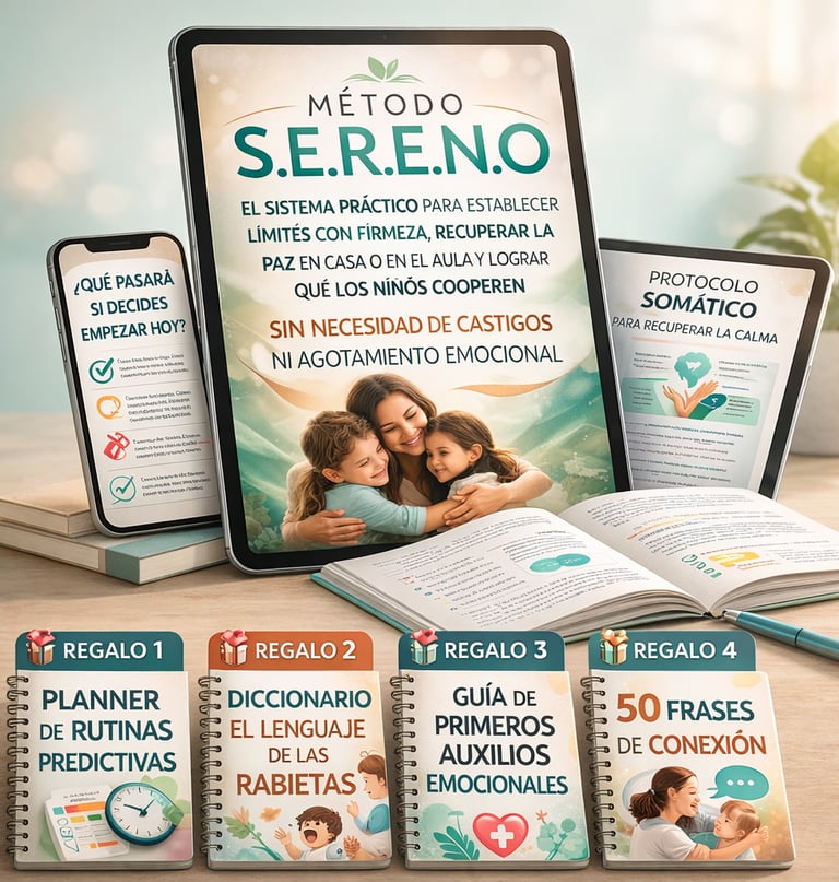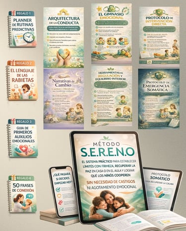 Somos profesionales dedicados a romper ciclos. Creamos el Método S.E.R.E.N.O tras años de observar cómo los niños con etiquetas de "difíciles" florecen cuando el adulto a cargo recibe las herramientas correctas. Nuestra misión es que ningún hogar o aula sea un lugar de lucha, sino un espacio de crecimiento consciente.